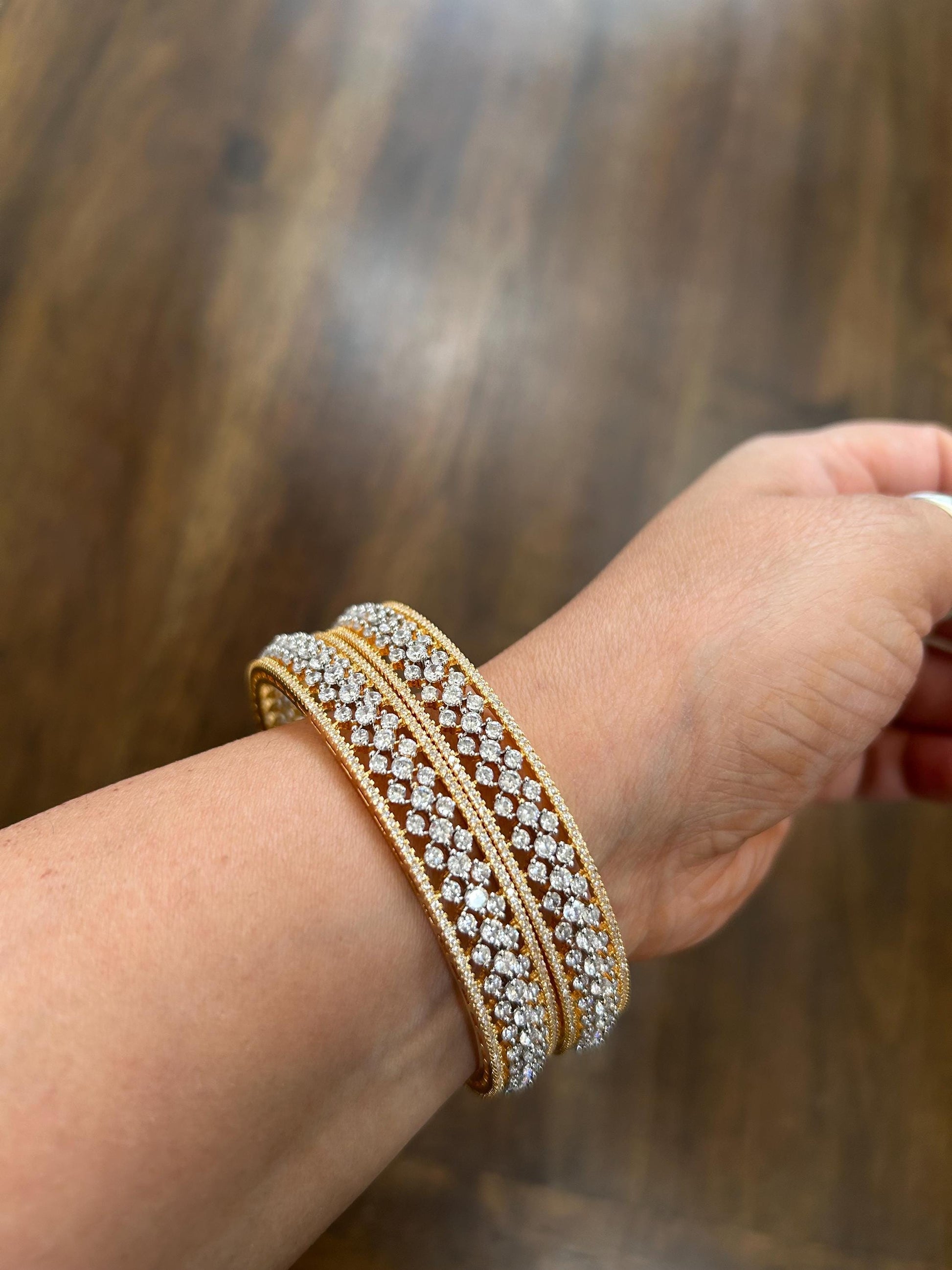 2.6 size American diamond bangles set cubic zirconia gold