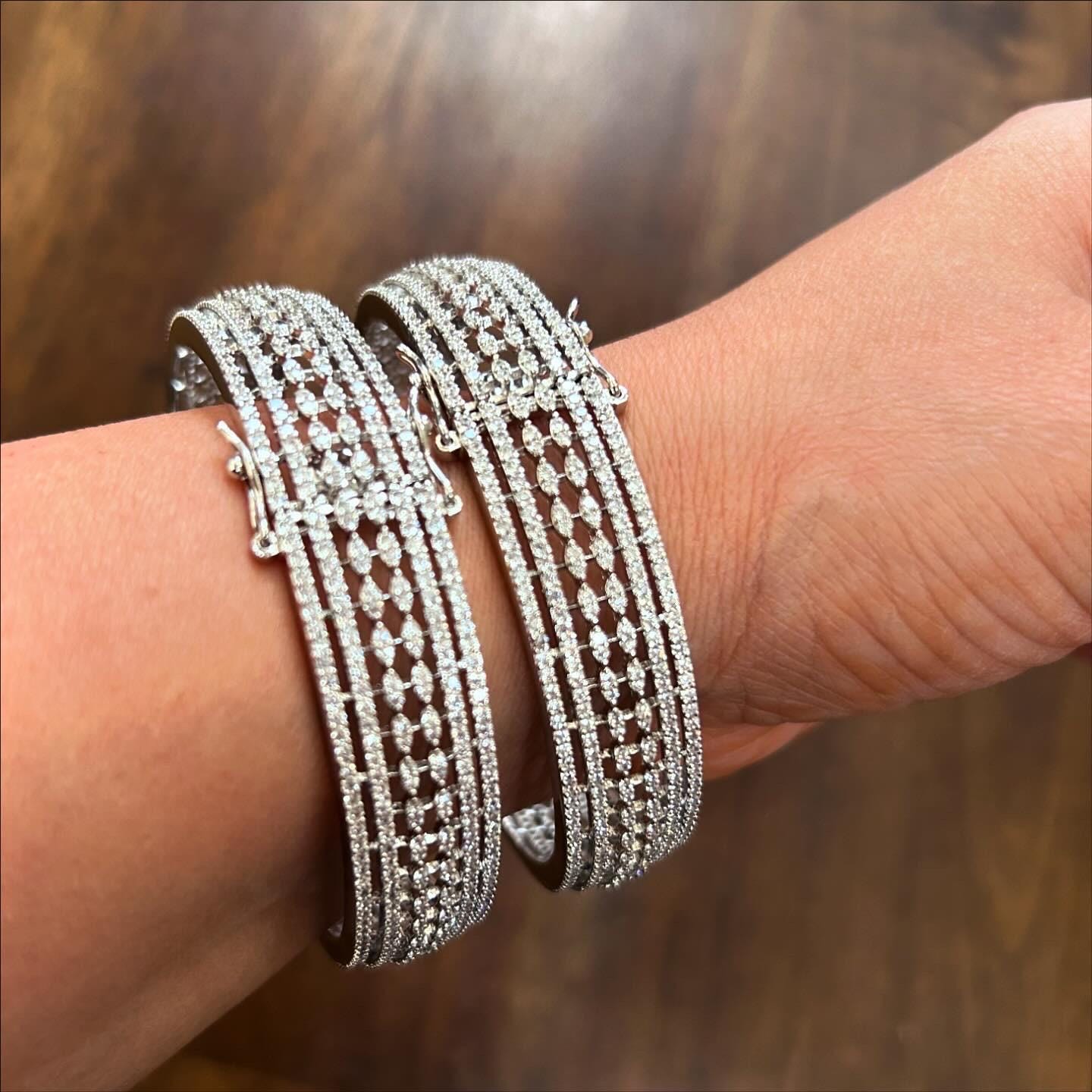 Aura offers an exclusive collection of the finest quality crafted Fashion Jewelry in various colors. We make sure that our collection is beautiful, and elegant and will surely galvanize you because our products are unique, comfortable, fashion-forward, and very popular for the rich look. We pack all the products using quality packaging material to ensure safe and secure transportation. Key Features 2 Pc Bangle set Trendy Design American Diamond Bangle