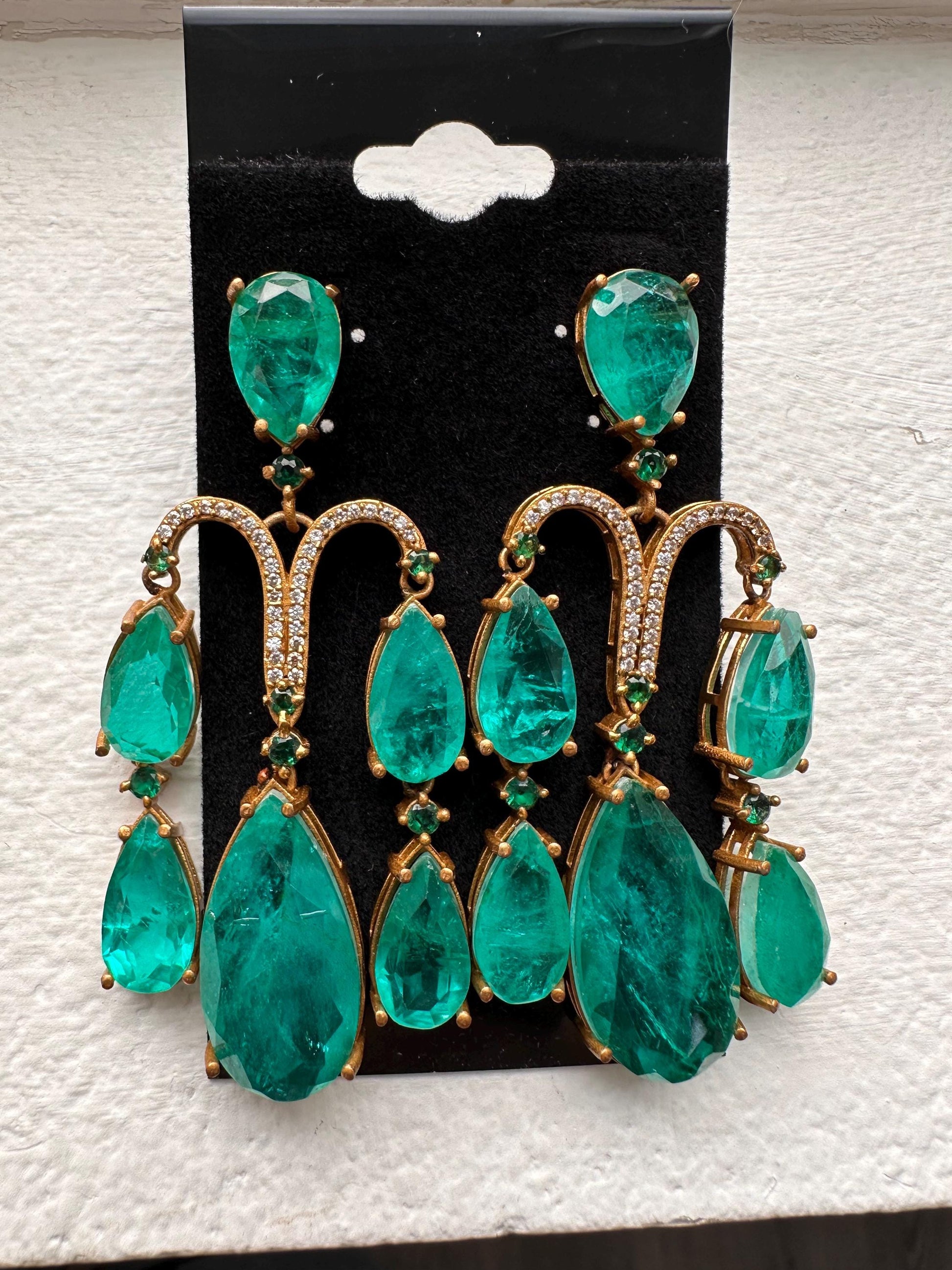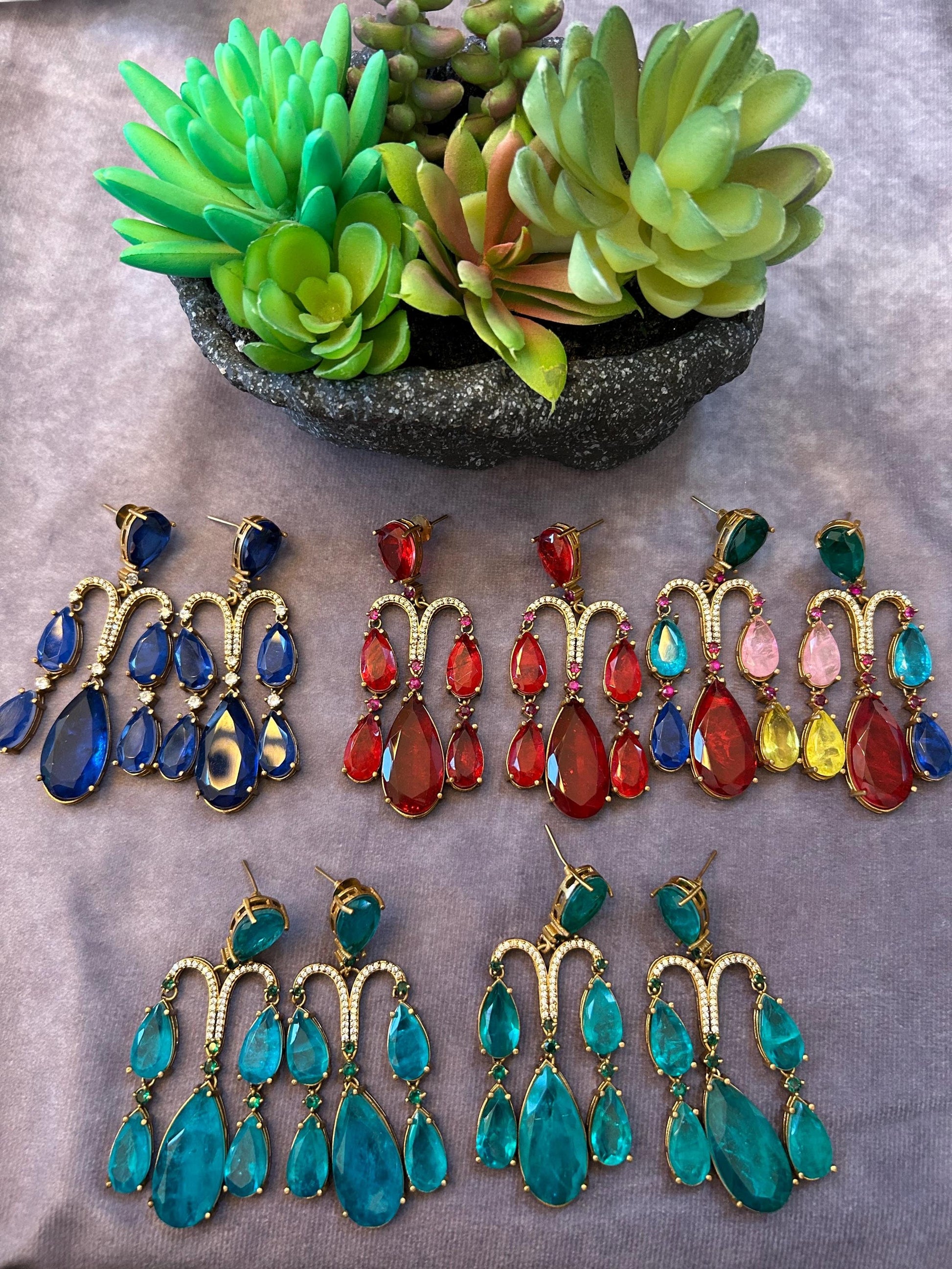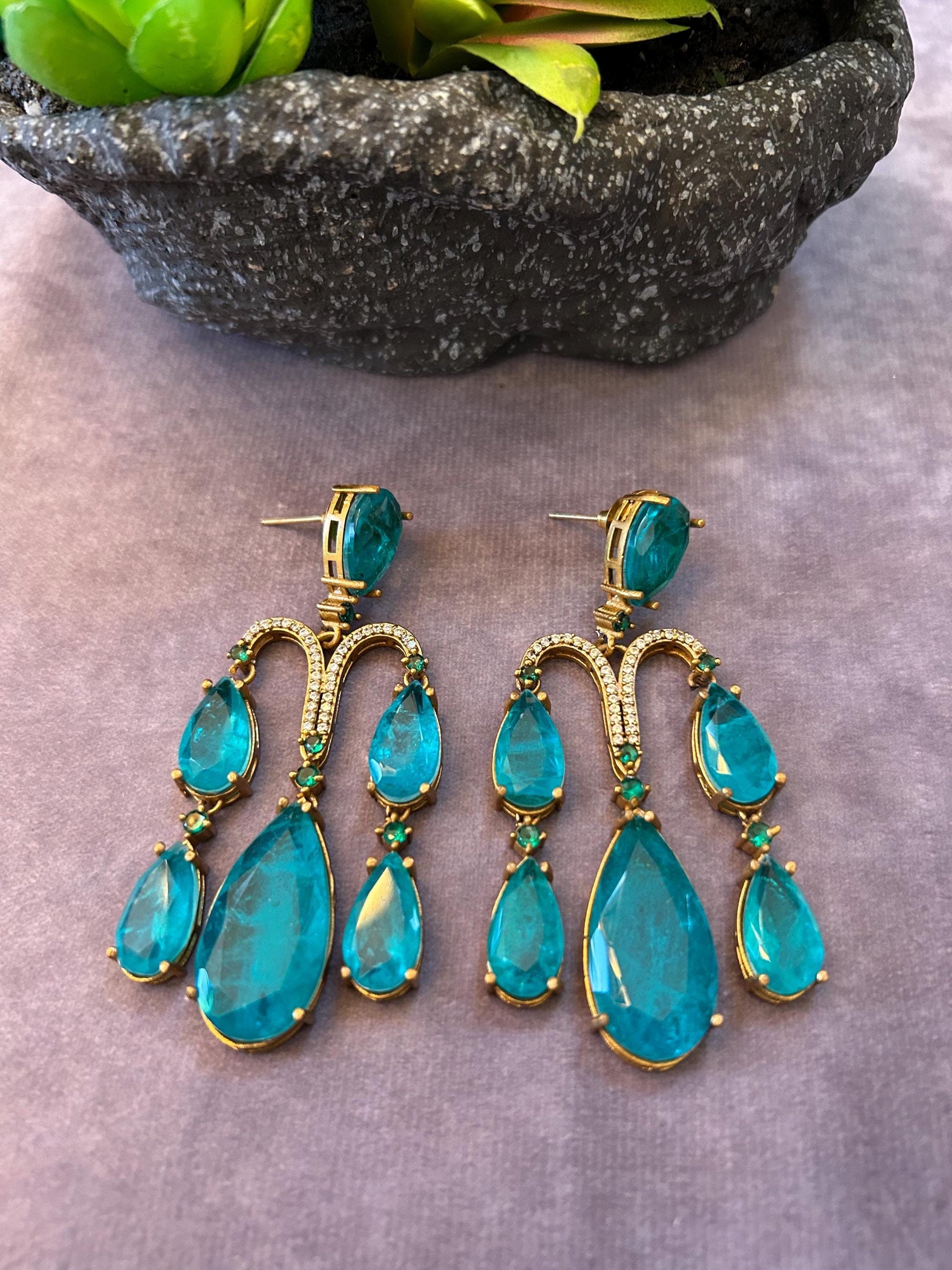 American Diamonds Earring With gold polished chandelier earrings trendy